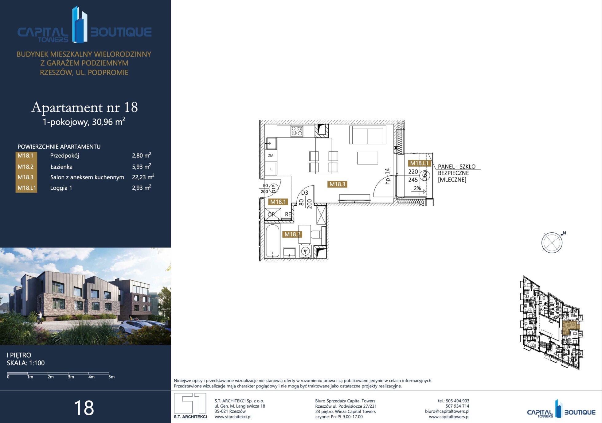 3 Pokoje z balkonem nad Wisłokiem 2 piętro i miejscem postojowym Capital Towers