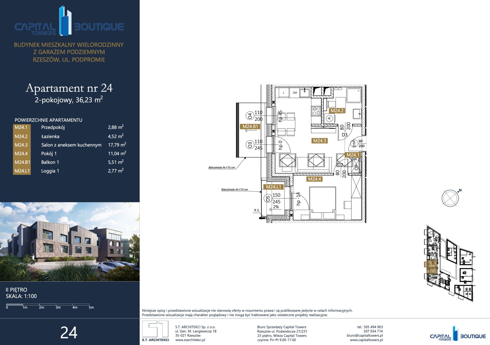 3 Pokoje z balkonem nad Wisłokiem 2 piętro i miejscem postojowym Capital Towers