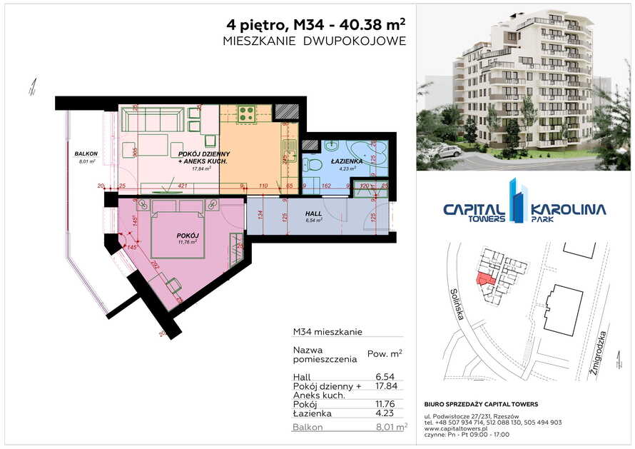 3 Pokoje z balkonem nad Wisłokiem 2 piętro i miejscem postojowym Capital Towers