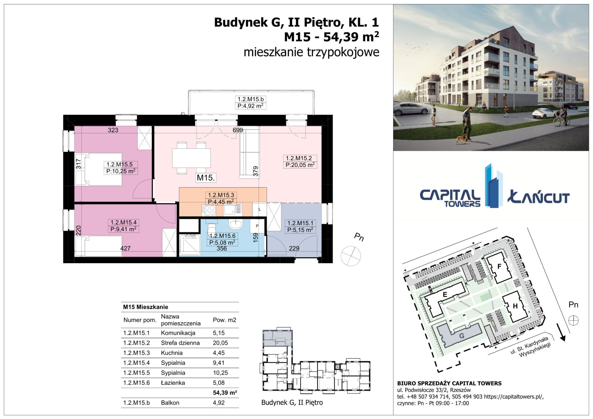 3 Pokoje z balkonem nad Wisłokiem 2 piętro i miejscem postojowym Capital Towers