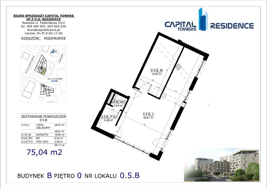 70 m2 w centrum Rzeszów ul.Podpromie 6 Lokal Usługowy od Capital Towers