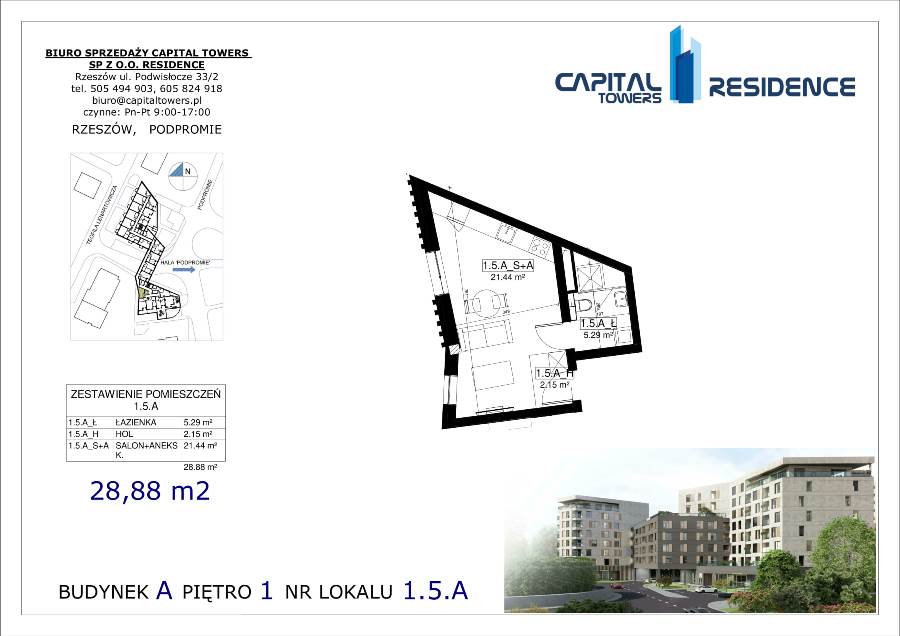 3 Pokoje z balkonem nad Wisłokiem 2 piętro i miejscem postojowym Capital Towers
