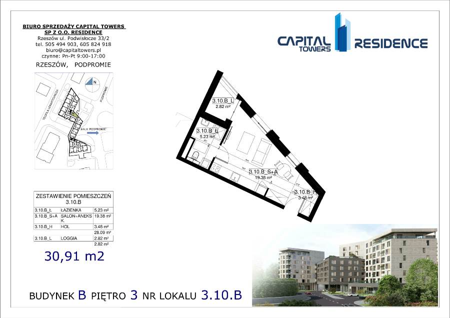 3 Pokoje z balkonem nad Wisłokiem 2 piętro i miejscem postojowym Capital Towers