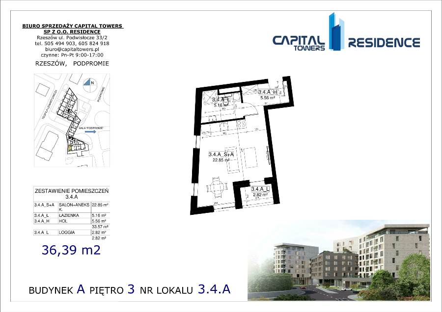 3 Pokoje z balkonem nad Wisłokiem 2 piętro i miejscem postojowym Capital Towers