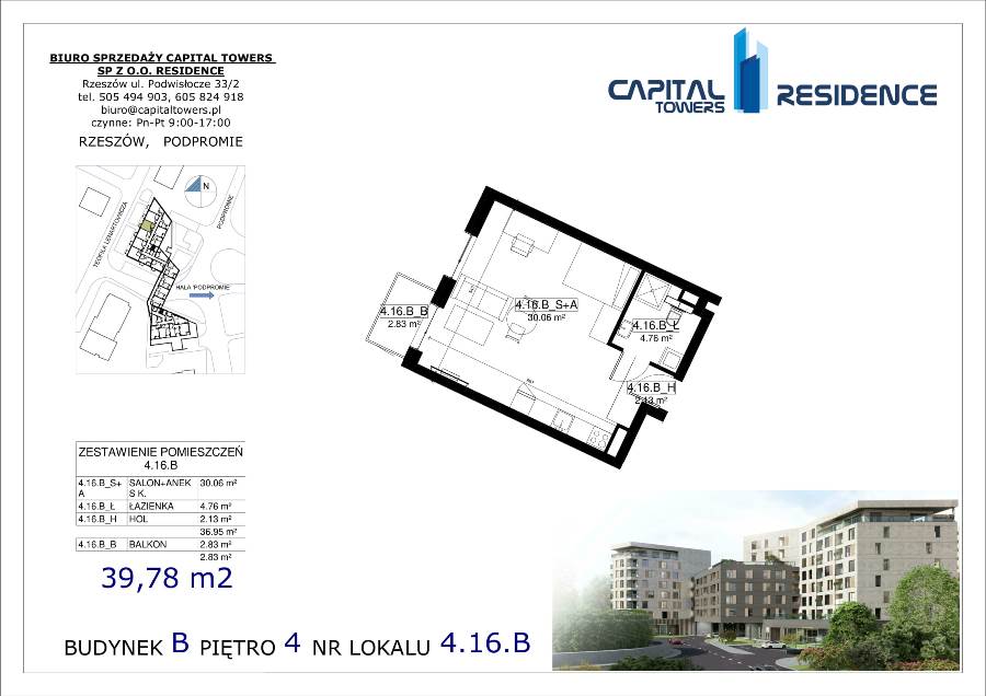 3 Pokoje z balkonem nad Wisłokiem 2 piętro i miejscem postojowym Capital Towers