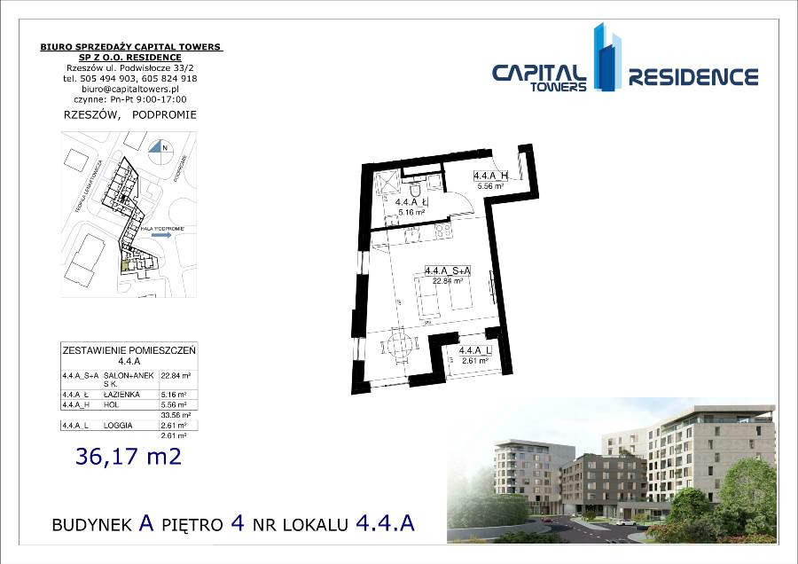 3 Pokoje z balkonem nad Wisłokiem 2 piętro i miejscem postojowym Capital Towers
