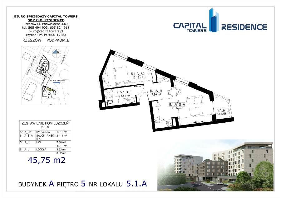3 Pokoje z balkonem nad Wisłokiem 2 piętro i miejscem postojowym Capital Towers