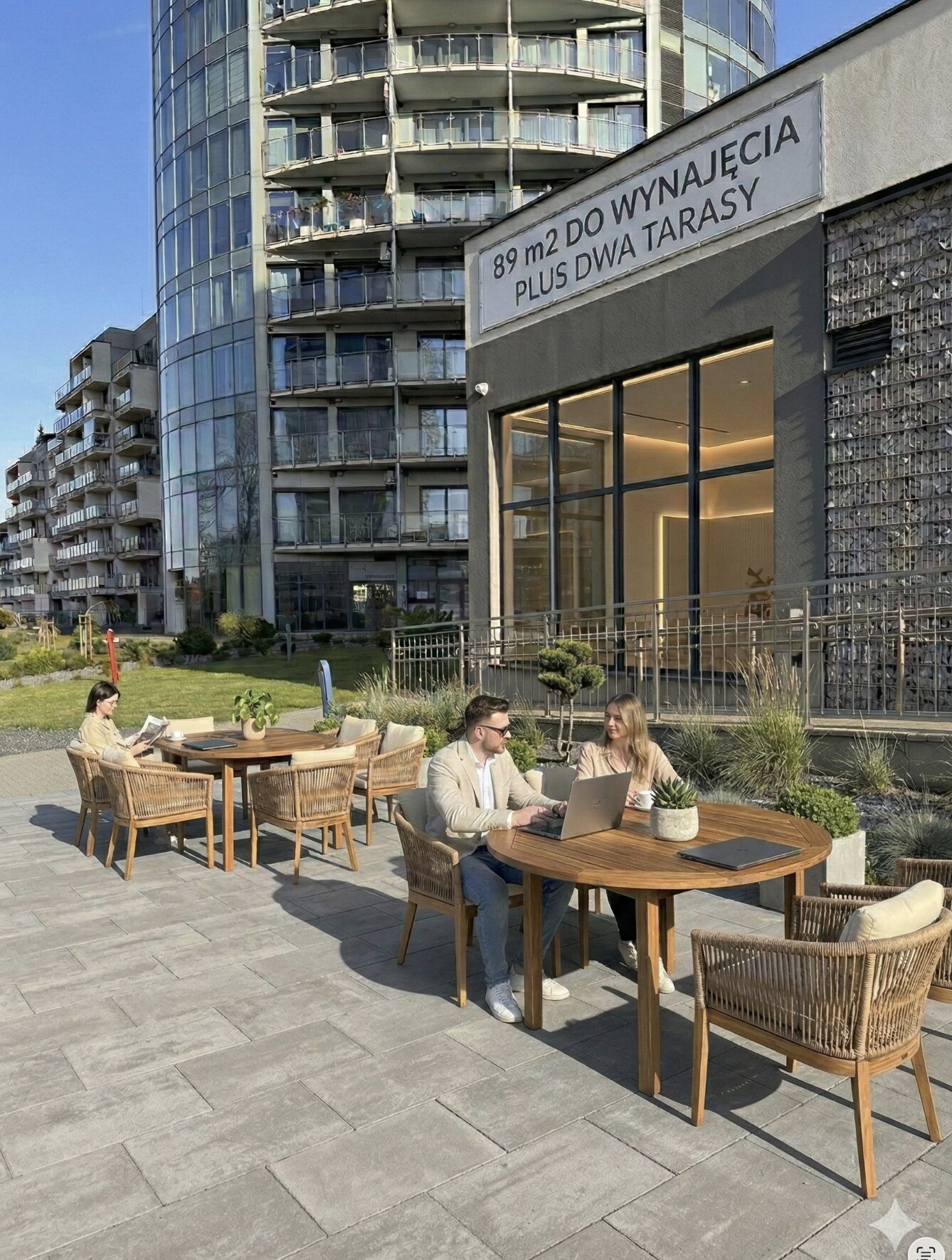 • Dwa zewnętrzne tarasy: Unikalna przestrzeń z widokiem na rzekę, idealna na strefę relaksu dla pracowników lub letni ogródek dla gości.