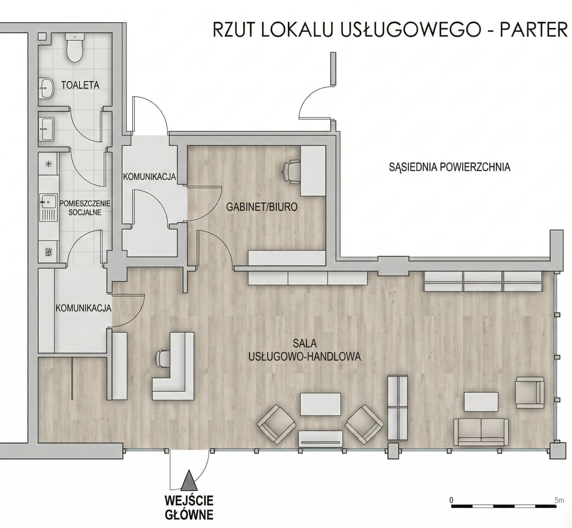 • Standard wykończenia: Lokal jest wykończony i gotowy do indywidualnej aranżacji.